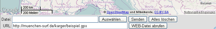 Rufen Sie den GPS Track Viewer auf www.GpsWandern.de auf. Klicken Sie dann auf "Auswählen" (oder "Durchsuchen", je nach Bröwser), wählen Sie im anschließenden Dateiauswahldialog Ihre gespeicherte GPX-Datei aus und klicken Sie "Öffnen".