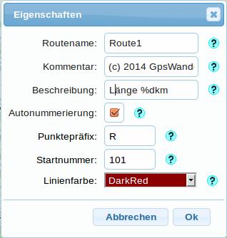 Kommentar und Beschreibung sind optionale freie Textfelder, bei der Belegung sollten Sie lediglich mögliche Beschränkungen Ihres GPS-Geräts beachten. In beiden Feldern können Sie die Variable "%d" (ohne Hochkomma) verwenden, sie wird beim Speichern der Route durch die Routenlänge in Kilometern ersetzt.