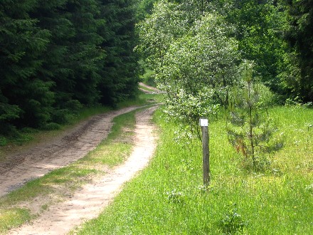 Kurz hinter dem Stadion biegt unser Weg nach Südwesten in den Wald ein und führt schattig um die ganze Westseite des Sees bis zum Weiler Schmacht. Hier haben wir uns schon etwas vom See entfernt und entfernen uns noch weiter, da es durch das Feuchtgebiet am südlichen Seeende kein Durchkommen gibt. Schilder Richtung Nistelitz und Groß Stresow weisen den richtigen Weg bis zur Bundesstraße B196.